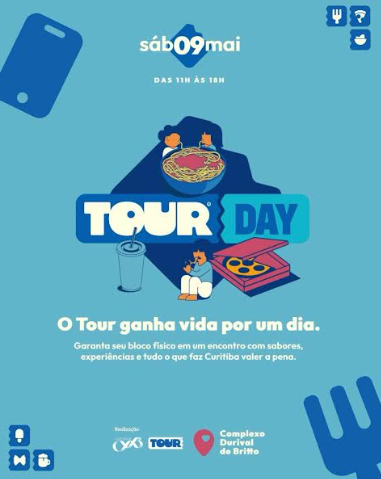 O 1º Tour Day Curitiba acontece no dia 9 de maio, no Complexo Durival de Britto, das 11h às 18h, e marca oficialmente o lançamento da nova edição do Tour Curitiba, antecipando ao público a proposta do projeto por meio de uma experiência concentrada em um único dia. Para mais informações, acesse os perfis oficiais no Instagram: @cwbbrasil, @tourcuritiba e @oquefazercuritiba.